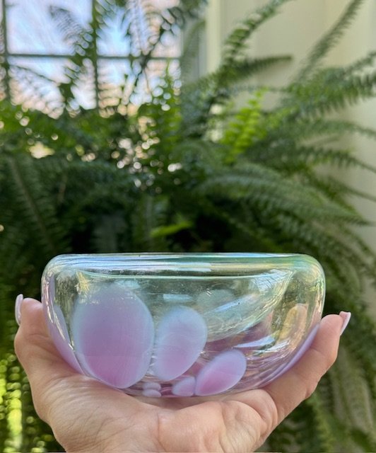 Yesterday was plant day. I was watering my houseplants and noticed that a glass bowl that I made years ago needed dusting. I realize it’s made to hold things, but I’d rather it hold something more meaningful than dust. Still, dust would settle inside it anyway.